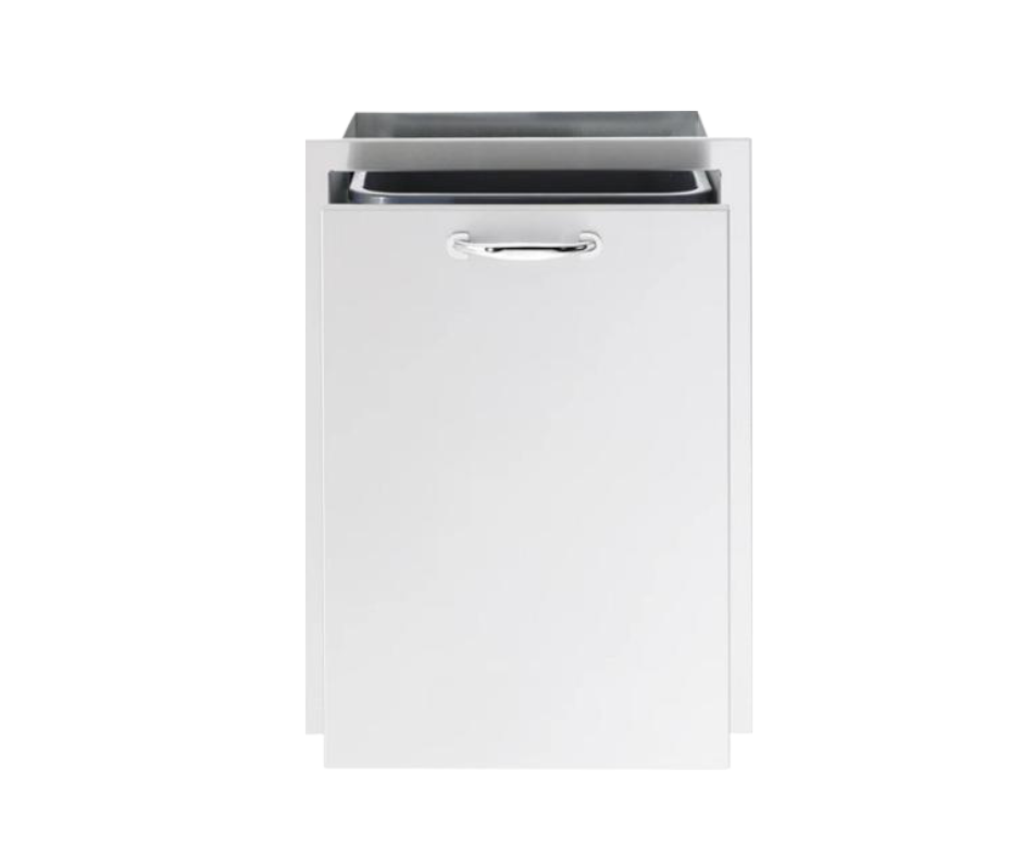 Enclosed trash drawer constructed from durable 304 stainless steel, designed to conceal waste containers while maintaining a clean outdoor kitchen appearance. Features smooth-slide operation and easy-access design for convenient waste management.