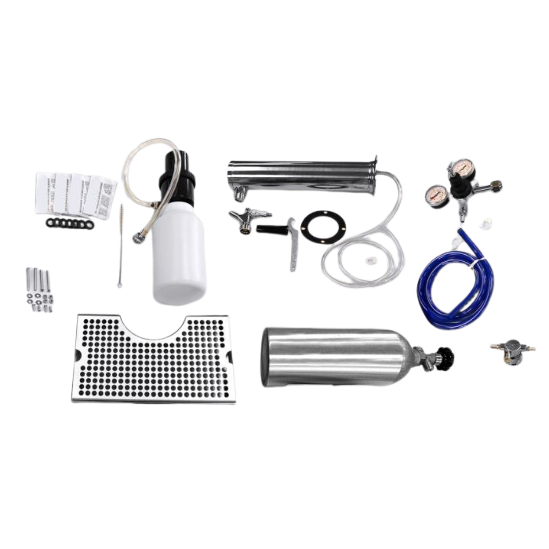 Single-tap dispensing kit for one beverage keg, including faucet, tubing, and essential installation components.