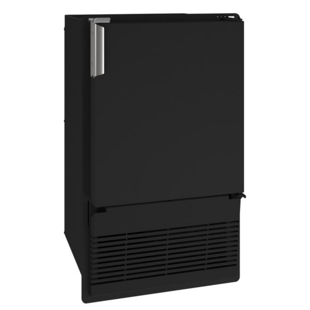 14-inch marine ice maker with flange for cabinet mounting, black solid door, and corrosion-resistant materials.